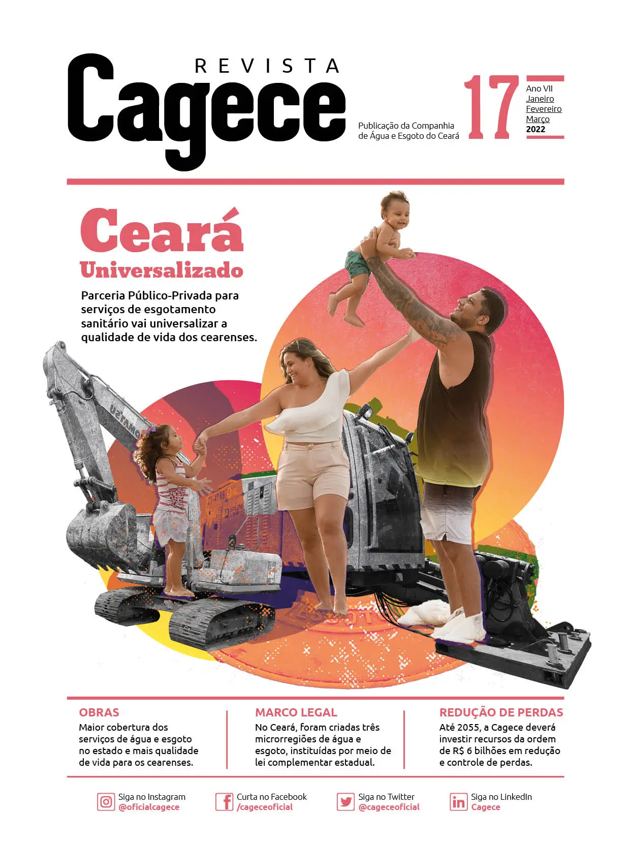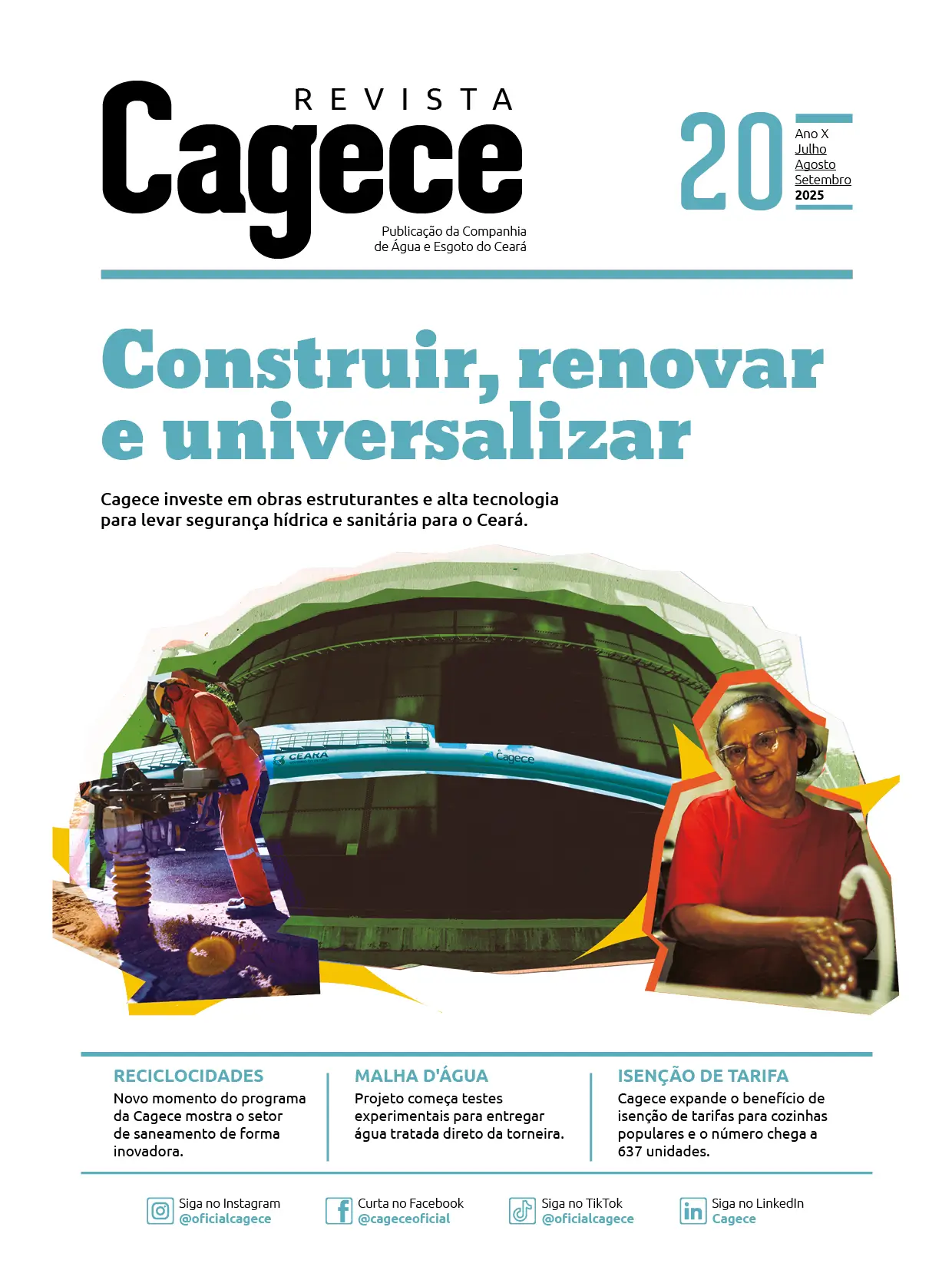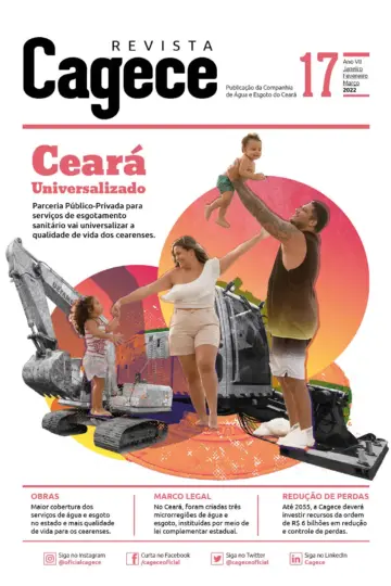 Olhando para o futuro, a Cagece está cada vez mais preparada para enfrentar os desafios do saneamento e garantir um futuro mais sustentável para as próximas gerações. É isso que a 20º edição da Revista Cagece quer mostrar: investimentos contínuos em inovação e tecnologia são essenciais para ampliar ainda mais o acesso aos serviços de água e esgoto. Nosso compromisso é seguir avançando com projetos que promovam a inclusão social, a preservação dos recursos naturais e a melhoria da qualidade de vida de todos os cearenses. Juntos, construiremos um futuro onde o saneamento seja uma realidade acessível, eficiente e sustentável para toda a população. Boa leitura!